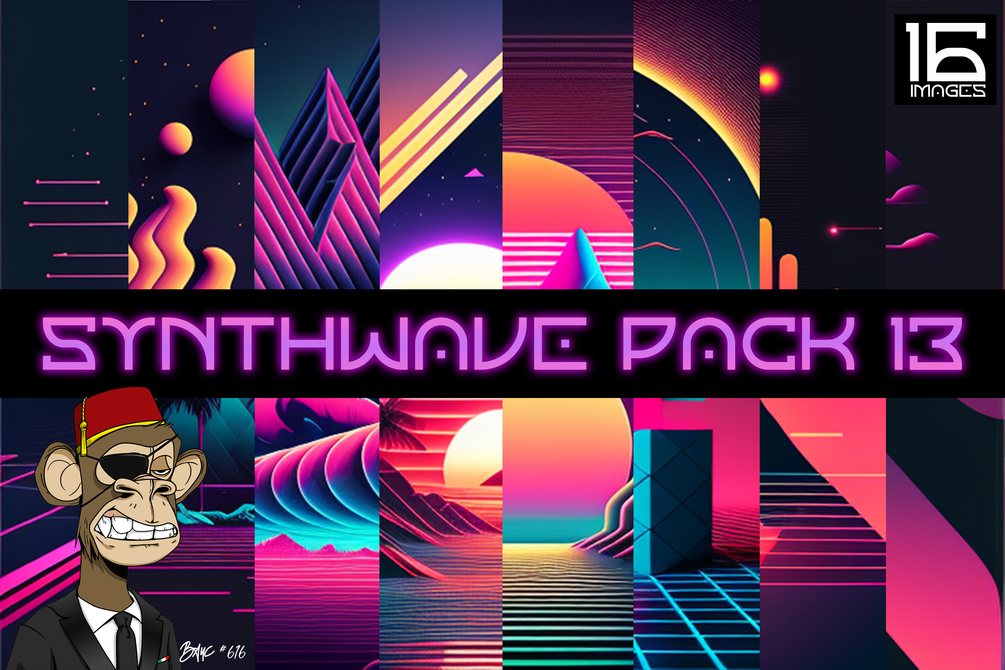 Pack of 16 high-quality, high-resolution synthwave-themed images that can be used as backgrounds in art projects such as music videos and album covers. The images feature a range of styles and moods, including neon-drenched cityscapes and dreamy landscapes, and have a vibrant color palette and a futuristic aesthetic. All images are royalty-free, meaning they can be used as many times as desired without worrying about copyright issues. These images are sure to add a touch of retro-futurism to any project and bring your vision to life.