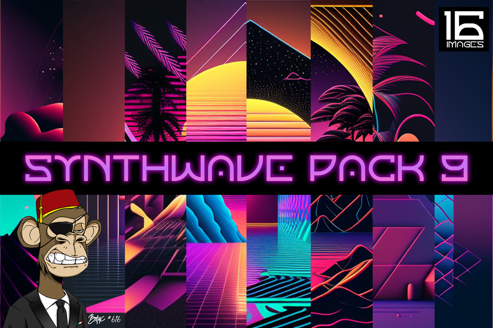Pack of 16 high-quality, high-resolution synthwave-themed images that can be used as backgrounds in art projects such as music videos and album covers. The images feature a range of styles and moods, including neon-drenched cityscapes and dreamy landscapes, and have a vibrant color palette and a futuristic aesthetic. All images are royalty-free, meaning they can be used as many times as desired without worrying about copyright issues. These images are sure to add a touch of retro-futurism to any project and bring your vision to life.